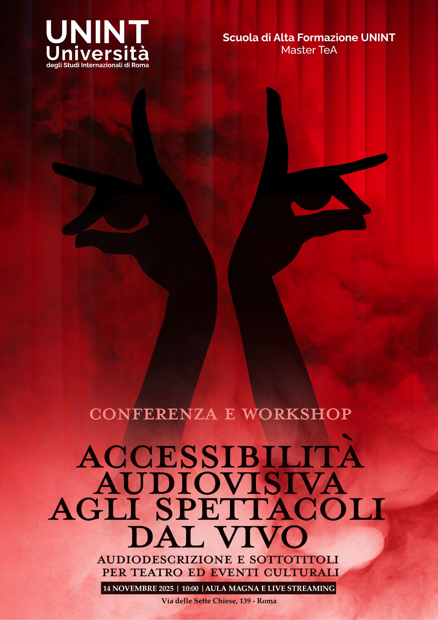 La Scuola di alta formazione UNINT, nell’ambito delle attività del master universitario di I livello in “Traduzione e adattamento delle opere audiovisive e multimediali per il doppiaggio e il sottotitolo”, organizza l’evento dal titolo “Accessibilità audiovisiva agli spettacoli dal vivo. Audiodescrizione e sottotitoli per teatro ed eventi culturali”.
