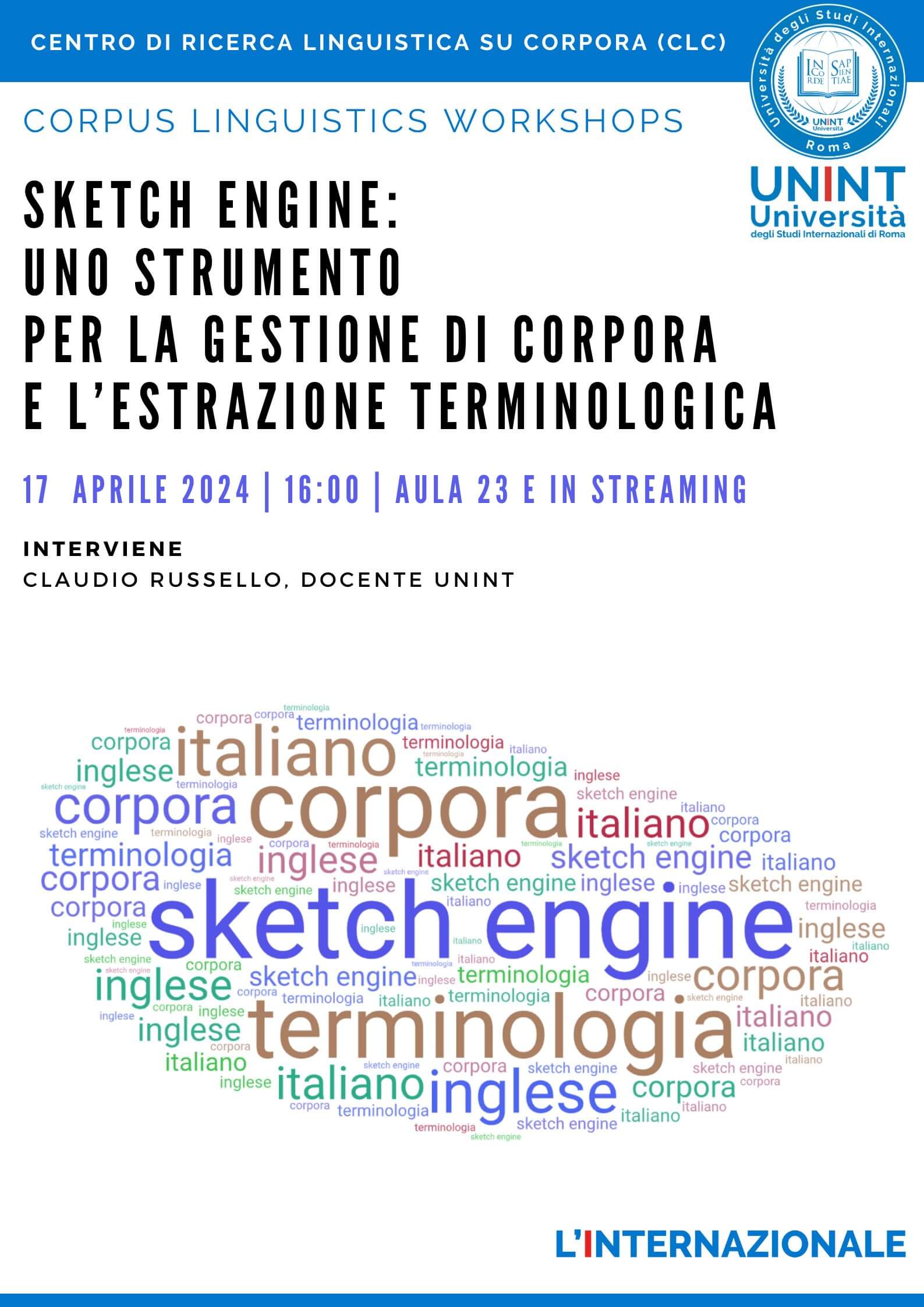L’Università degli Studi Internazionali di Roma – UNINT e il Centro di ricerca Linguistica su Corpora (CLC) UNINT organizzano un ciclo annuale di incontri seminariali rivolti all’uso della metodologia della linguistica dei corpora su varie lingue, con diversi approcci metodologici e strumenti di analisi. L’incontro dal titolo “Sketch Engine: uno strumento per la gestione di corpora e l’estrazione terminologica” si terrà il 17 aprile 2024 a partire dalle ore 16:00 nel laboratorio 23 e in diretta streaming.