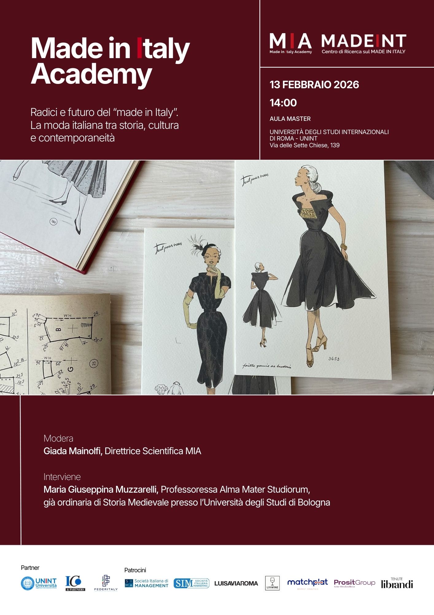 La Made in Italy Academy (MIA) dell’Università degli Studi Internazionali di Roma – UNINT, presenta l’evento dal titolo “Radici e futuro del “made in Italy”. La moda italiana tra storia, cultura e contemporaneità” che si terrà il 13 febbraio 2026 dalle ore 14:00 in aula master.