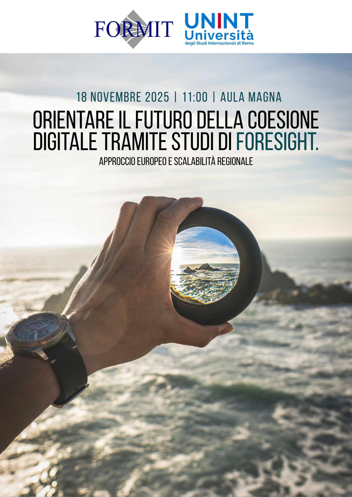 L’Università degli Studi Internazionali di Roma – UNINT, ospita il convegno dal titolo “Orientare il futuro della coesione digitale tramite studi di foresight. Approccio europeo e scalabilità regionale”. L’incontro, organizzato dalla Fondazione FORMIT, si terrà il 18 novembre 2025 dalle 11:00 in aula magna.