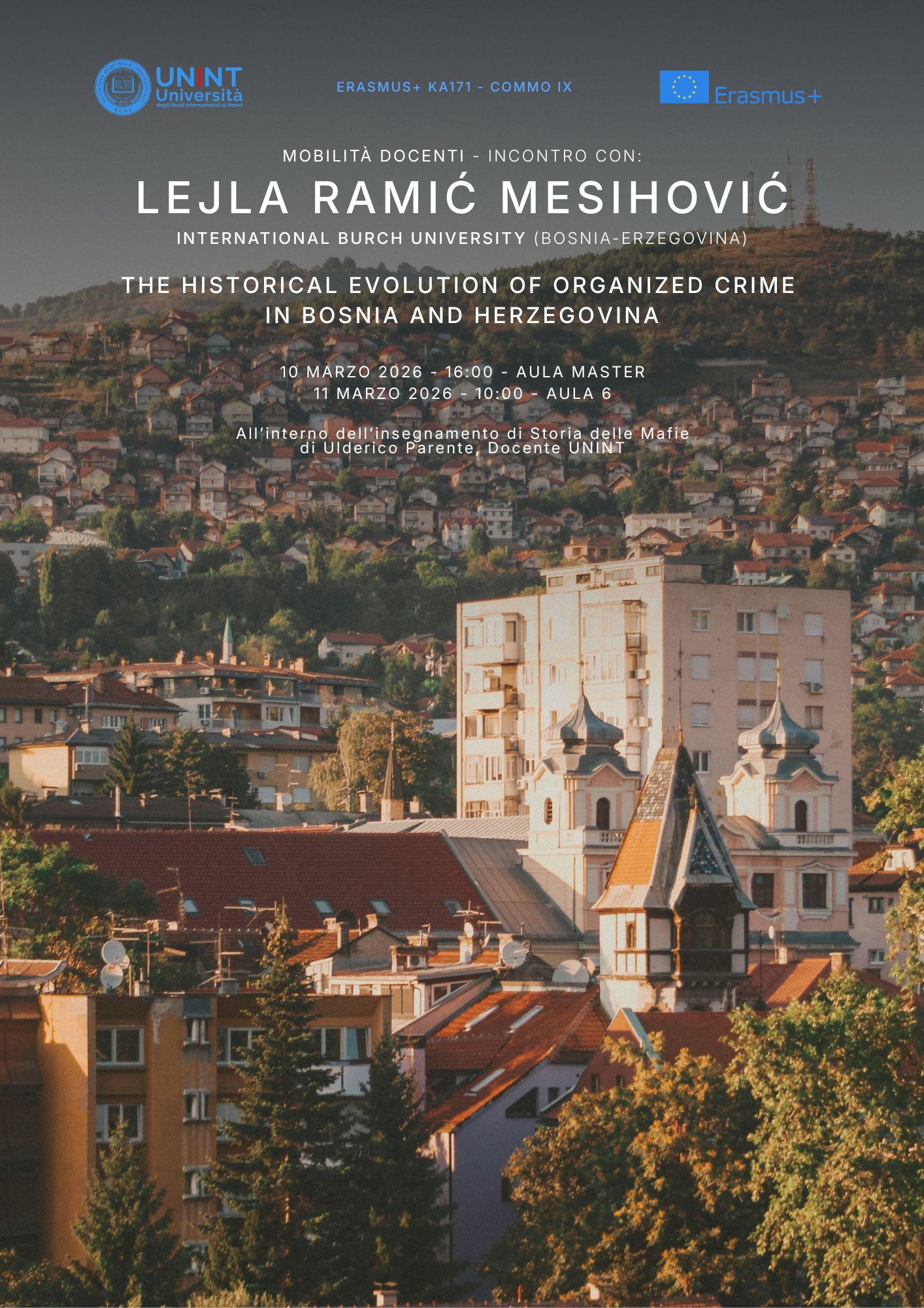 Nell’ambito della mobilità Erasmus+ a fini di insegnamento (Erasmus+ KA171 – COMMO IX), l’Università degli Studi Internazionali di Roma – UNINT organizza due incontri con Lejla Ramić Mesihović dalla International Burch University (Bosnia-Erzegovina), che si terrano il 10 e 11 marzo 2026 in presenza e in live streaming.