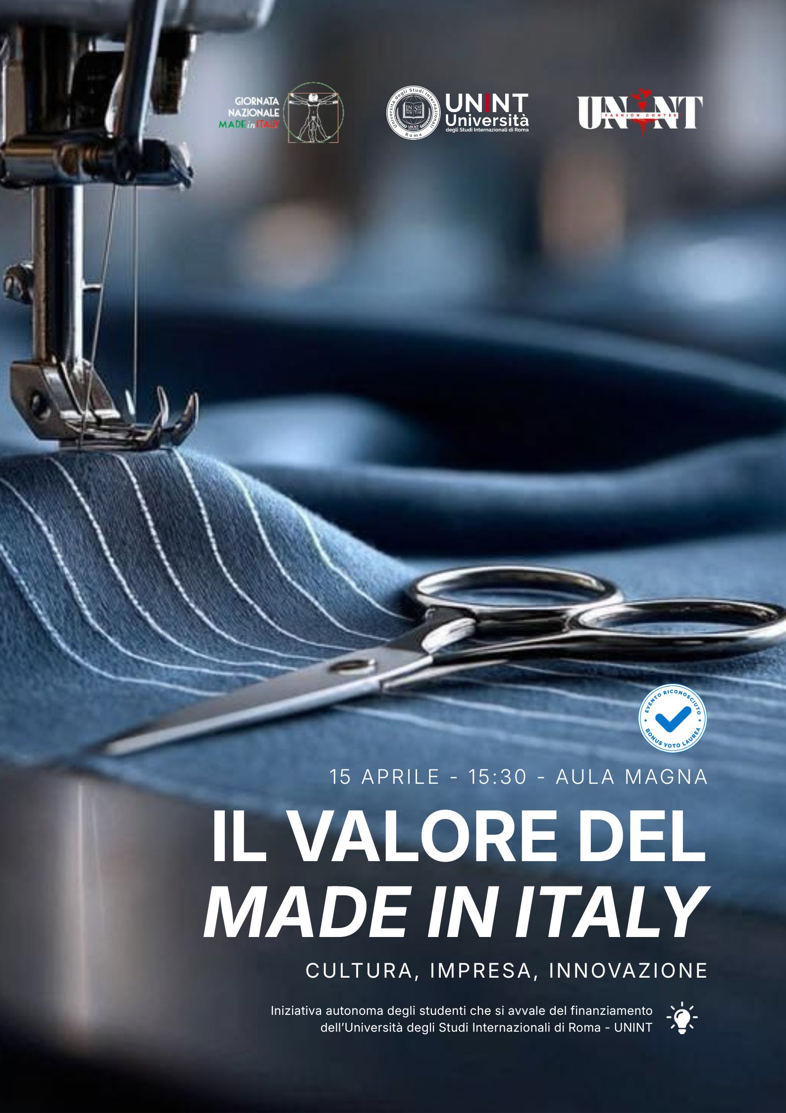 In occasione della Giornata del Made in Italy e nell’ambito dei progetti di UNINTRAPRENDENZA, UNINT Fashion makers organizza l’evento dal titolo “Il Valore del Made in Italy” che si terrà il 15 aprile a partire dalle ore 15:30 in aula magna e in live streaming.