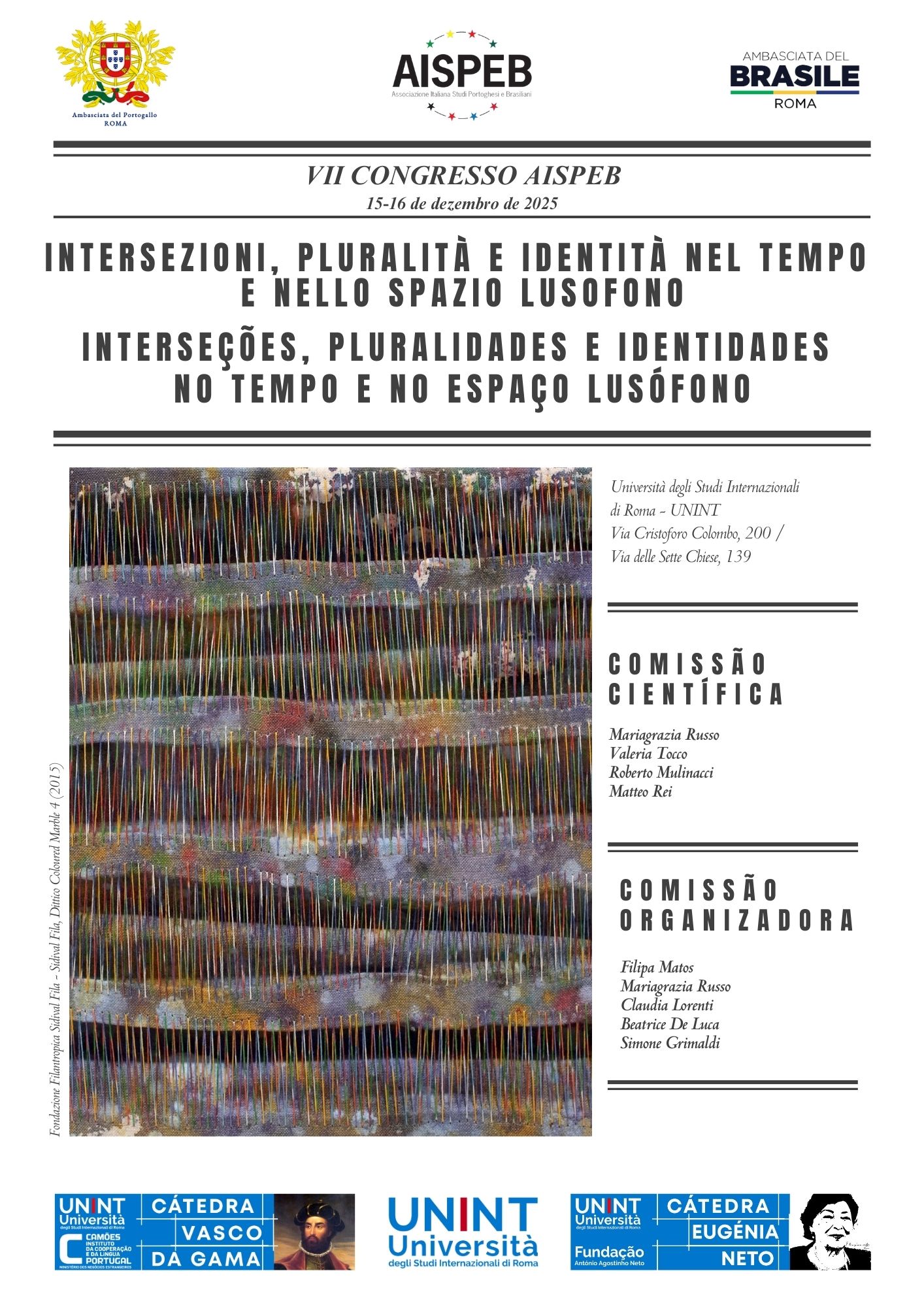 L’Università degli Studi Internazionali di Roma – UNINT, in collaborazione con l’Ambasciata del Portogallo in Italia e l’Ambasciata del Brasile in Italia organizza il VII Congresso AISPEB dal titolo “Intersezioni, pluralità e identità nel tempo e nello spazio lusofono – Interseções, Pluralidades e Identidades no tempo e no espaço lusófono”.